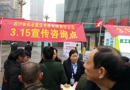 “3.15”国际消费者权益日到来之际,邻水2138cn太阳城集团水务公司在龙腾广场组织开展了以“网络诚信 消费无忧”为主题的宣传咨询活动。