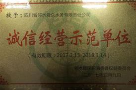 2017年3月14日,邻水2138cn太阳城集团水务公司被邻水县保护消费者权益委员会评为“诚信经营示范单位”。